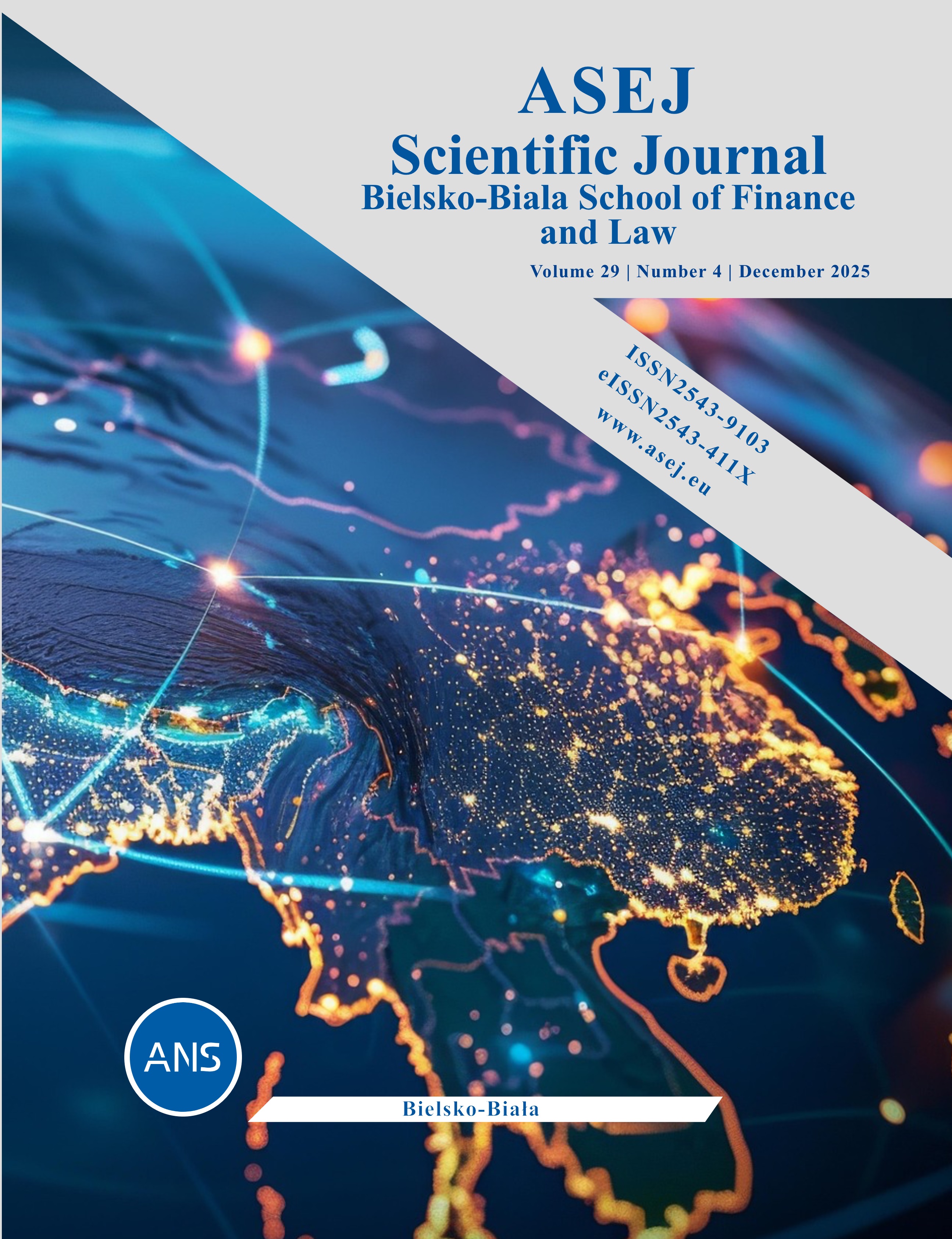 It is a quarterly publication with 70 points assigned by the Polish Ministry of Science and Higher Education (2024), ICV 2016 - 2023: 100.00 - assigned by the ICI JOURNALS MASTER LIST, indexed in Polish and international databases, cross-disciplinary, open access journal (OA) of economics and finance, security studies, management and quality studies, law, information and communication technology and social issues, that provides an advanced forum for studies related to socio-economic development. The Scientific Journal of Bielsko-Biala School of Finance and Law (ASEJ) is indexd in: DOAJ, CEJSH, CEEOL, BASE, BazEkon, ICI Journals Master List, ERIH PLUS, EBSCO, ROAD, GICID:71.0000.1500.1631, Google Scholar. The papers are published under a Creative Commons Attribution CC-BY-NC 4.0 license on the principle that making research freely available to the public supports a greater global exchange of knowledge. The published documents include original scientific research, global news, letters and commentary as well as review articles and rigorous peer-review procedures to maintain a high-quality of publication are applied.